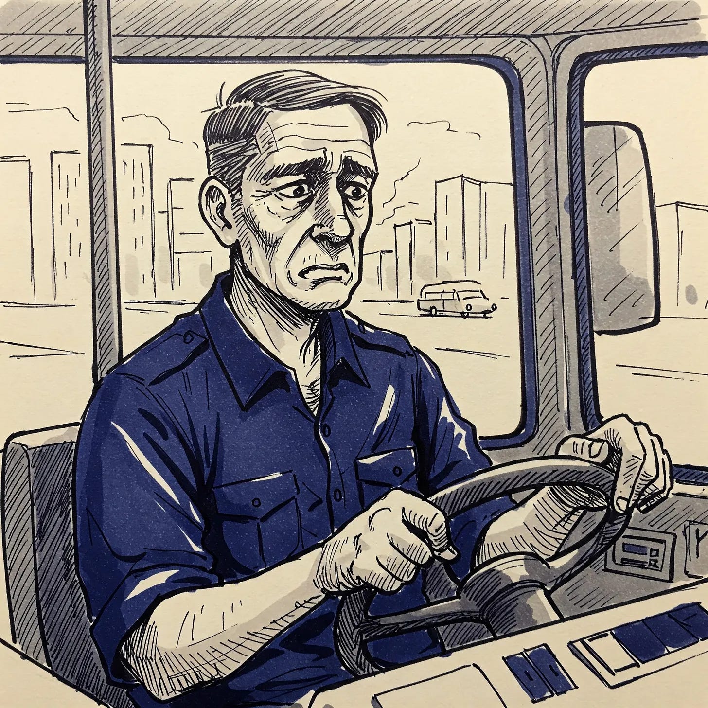 [The rest of his shift passed in a blur of stops and starts, passengers boarding and departing, none leaving an impression. By the time he returned to the depot, doubt had begun its corrosive work. Had there really been a gun? Had the threat been real or imagined?]