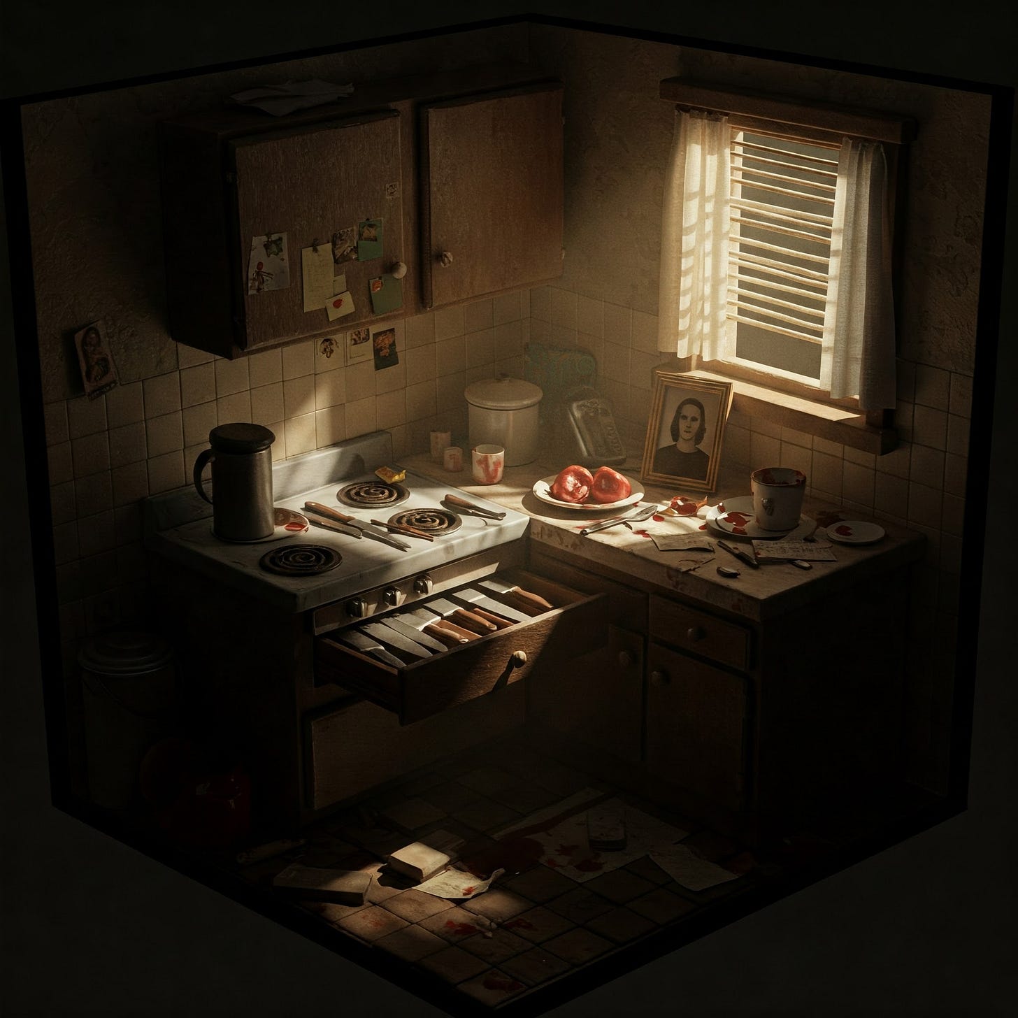 칼이 든 서랍이 위층 이웃이 걸을 때마다 덜컹거렸고, 그 떨림은 내가 지켜야 할 약속들을 상기시켰다. 식기들이 작은 풍경처럼 짤랑거리며, 앞으로 일어날 일들을 속삭이는 금속성 소리를 냈다.